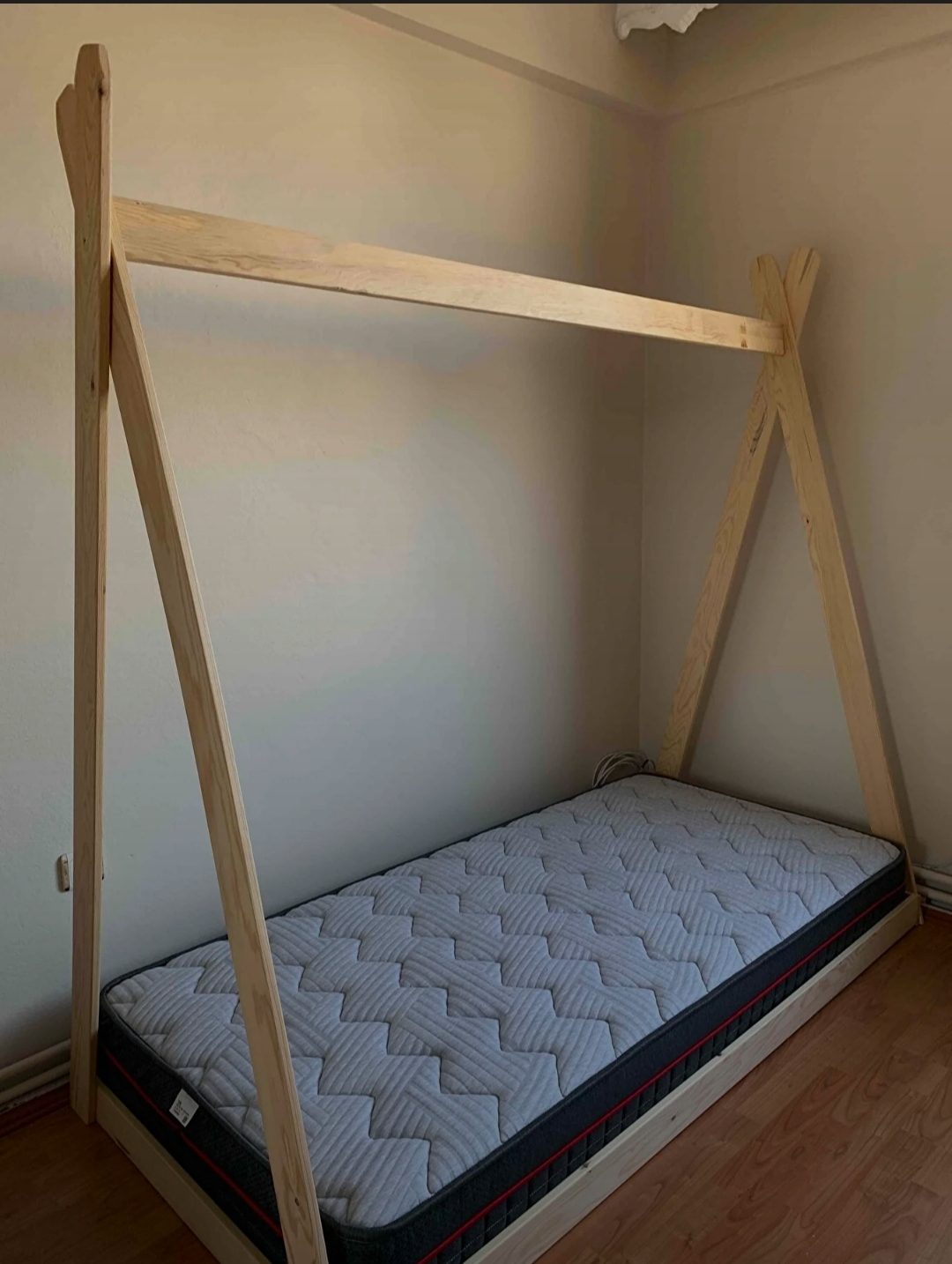 Doğadan ilham alan tasarımıyla dikkat çeken Doğal Ahşap Kızılderili Tarzı Modern Karyola, çocukların hayal gücünü besleyen özgün bir uyku alanı sunar. Kızılderili çadır formundan ilham alınarak tasarlanmış bu karyola, %100 doğal ahşap yapısı ve zarif detaylarıyla hem fonksiyonel hem estetik bir seçimdir.