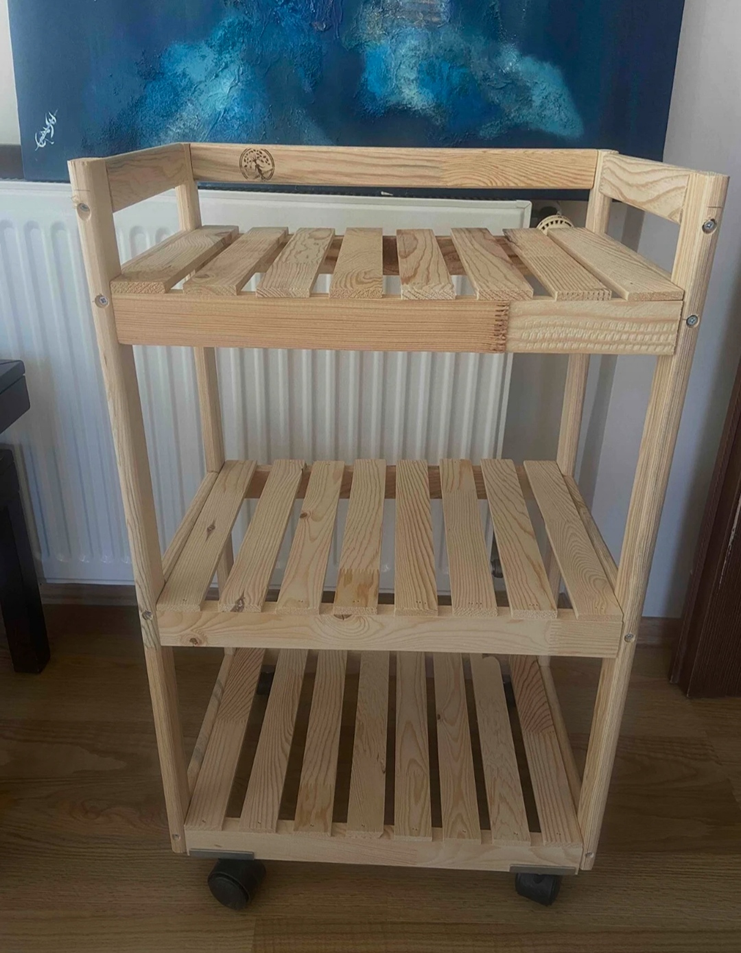 Doğal Ahşap 3 Raflı Tekerlekli Düzenleyici Servis Aracı, evde veya işyerinizde kullanım için mükemmel bir çözüm sunar. %100 doğal ahşap malzemeden üretilmiş bu düzenleyici, üç geniş rafı ve pratik tekerlekli tasarımı ile eşyalarınızı düzenli bir şekilde saklamanızı sağlar. Tekerlekleri sayesinde kolayca hareket ettirilebilir, her alanda pratik kullanım imkanı sunar.